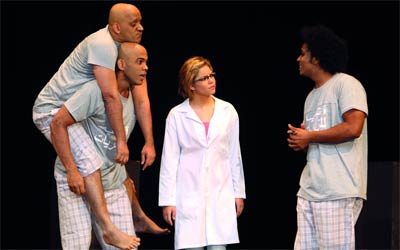 من مسرحية «مشاجرة جماعية» الـــــــــــــــــــــــــــــــــتي لاقت استحسان جمهور «المسرحيات القصيرة». تصوير: مصطفى قاسمي