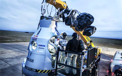 يستعد المغامر النمساوي فيلكس باومجارتنر، للقفز من حافة الفضاء إلى الأرض من كبسولة فضائية من ارتفاع نحو 37 ألف متر، والسباحة في الهواء لخمس دقائق و35 ثانية، بعدما تدرب مع فريق «ريد بُل ستراتوس» للقفز لأكثر من خمس سنوات، وستبلغ سرعة باومجارتنر أثناء السقوط نحو 1110 كيلومترات/ساعة.