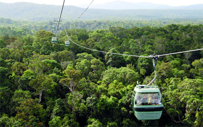 وأنشئ خط التلفريك في هذه الغابة عام ،1995 ليصبح الأطول من نوعه على مستوى العالم، إذ تبلغ المسافة التي يقطعها 7.5 كيلومترات، تبدأ من المحطة الرئيسة خارج مدينة كيرنز الواقعة على الساحل الشرقي لولاية كوينزلاند حتى كوراندا المجمع التعديني السابق، ويستمتع الركاب على متن التلفريك بمنظر الخضرة الرائع.