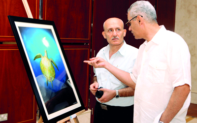 واعتبر أن مسمى المعرض موائم تماماً لرغبة الفنانين المشاركين فيه في أن يكون بمثابة رسالة مفتوحة تلفت أنظار الجميع إلى الكثير من المعاني والقضايا، وعلى رأسها صون الحياة البحرية في الدولة، فضلاً عن لفت الأنظار إلى بديع صنع الخالق، على حد تعبيره. يوسف العلي، من جانبه، أشار إلى فكرة الجمع بين الجمالي والتوثيقي في مجموعة الصور التي تم التقاطها، مشيراً إلى صعوبة التعامل مع معدات التصوير الثقيلة، فضلاً عن انشغال المجموعة بالتقاط كل مظاهر الحياة البحرية التي تصادفهم من مختلف الأحجام، ما يعني الاضطرار إلى استبدال العدسات وتعديل الأبعاد الفنية لعملية التصوير، فضلاً عن أن المواءمة بين الغرضين الجمالي والتوثيقي فرضت شروطاً دقيقة تراعي عنصر الإبهار الذي لا يمنح في الوقت ذاته انطباعات تخل بالمقاييس الحقيقية الكائنات البحرية التي يتم تصويرها.