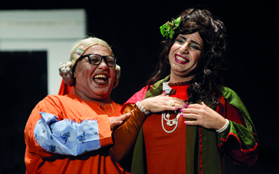 السميطي وإبراهيم سالم بلمسات سيف في مسرحية «زهرة مهرة». تصوير: أسامة أبوغانم