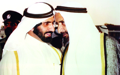 وأشار النعيمي إلى أن الذراع اليمنى للوالد المغفور له الشيخ زايد، كان صاحب السمو الشيخ خليفة بن زايد آل نهيان، رئيس الدولة، الذي تعلم منه فسار على الدرب، تماماً كما كان صاحب السمو الشيخ محمد بن راشد آل مكتوم، نائب رئيس الدولة رئيس مجلس الوزراء حاكم دبي، الذراع اليمنى لأبيه المغفور له الشيخ راشد بن سعيد آل مكتوم، فخبر منه الحكمة والإخلاص في العمل، ومن يرقبه يجده دائماً على رأس جهاز تنفيذي ما يمارس العمل المباشر بفكره وطاقته وسواعده.
