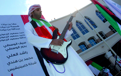 لم تجد المؤسسات المهتمة بالثقافة والفنون والعشرات من أصحاب المبادرات الذاتية حلاً لتجد لنفسها موقعاً في أجندة الاحتفالات، سوى توسيع رقعة الزمان، لتبدأ احتفالاتها حتى قبل حلول الذكرى الـ 41 لليوم الوطني الأحد، إلا أن هذا المخرج أيضا لم يكن كافياً، كي تتزامن احتفالاتها مع أخرى مقامة في التوقيت ذاته، في ضوء منافسة قوية سعى فيها المبدعون أيضاً إلى إظهار فرحة وطن يزهو باتحاده، عبر وسائط متعددة منها الحروف والأنغام والألوان.