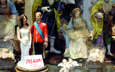 وذكرت وكالة الأنباء الإيطالية (أنسا) أن النحّات في نابولي جيني دي فيرجيليو، الذي يعمل في سوق «سان جورجيو أرمانو» الشهيرة في المدينة، قدّم مغارة عيد الميلاد فيها تمثال لكيت يظهرها حاملاً، وإلى جانبها الأمير ويليام. وتعرف هذه السوق بالمتاجر التي تقدّم الآلاف من زينة العيد، لاسيّما المغارات التي تمثّل ولادة السيّد المسيح.