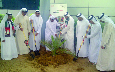 مسؤولو دبي للثقافة يغرسون شجرة الاتحاد في حديقة المنخول. من المصدر