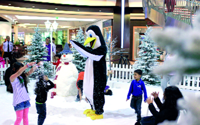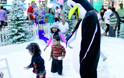 وأصبحت منطقة الألعاب الثلجية التي تم إنشاؤها بشكل خاص مقابل «فيرجين ميغاستور» منطقة باردة، حيث تتساقط زخات ثلجية كل 15 دقيقة، فيما يشارك في هذه الاحتفالية الشتوية مجموعة من رجال الثلج، وحيوانات الرنة وشخصيات البطريق. وتوافرت للصغار كرات الثلج الاصطناعية للمشاركة في المعارك المرحة من دون الحاجة إلى مغادرة شواطئ دبي المشمسة.