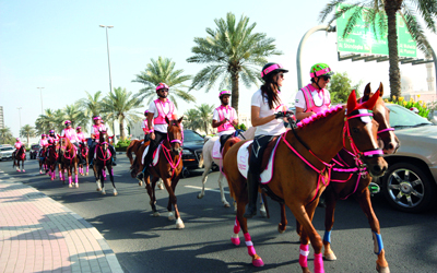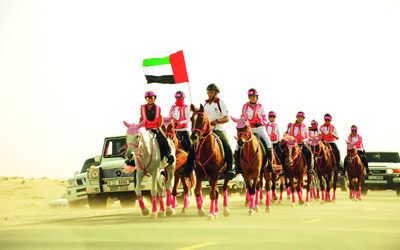 وتقوم جمعية أصدقاء مرضى السرطان الخيرية سنوياً بتنظيم هذه الفعالية التي تتضمن قيام فرسان القافلة وسفرائها، وعدد من الشخصيات الإماراتية المعروفة، بركوب هذه الخيول على شوارع الإمارات السبع للتوعية بمرض سرطان الثدي، حيث غطت نسخة العامين 2011 و 2012 أكثر من 600 كيلومتر من ربوع الإمارات، بمشاركة أكثر من 250 فارساً و فارسة و200 متطوع، ويمكن للراغبين بالمشاركة في نسخة عام 2013 تسجيل أسمائهم على الموقع الالكتروني، وتحديد رغباتهم من ناحية المسار والمسافة والموقع، إذ تغطي مسيرة الفرسان ما بين 30 و40 كيلومترا يومياً، ويتم قبول طلبات التسجيل لمن هم فوق سن الـ16، باستثناء الفرسان الصغار الحاصلين على تدريبات مسبقة في ركوب الخيل. وهناك أيضاً قسم للفارسات الإناث اللائي يرغبن في البقاء بعيداً عن أضواء وسائل الإعلام.