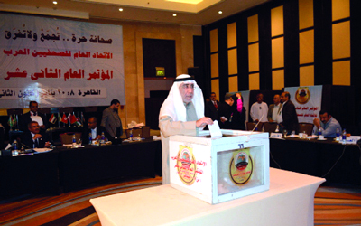 وكان المؤتمر العام الـ12 لاتحاد الصحافيين العرب، قد انطلقت أعماله في التاسع من يناير الجاري، وافتتحه وزير الإعلام المصرى، صلاح عبدالمقصود، بحضور وفود 18 من النقابات والجمعيات والاتحادات الصحافية في الوطن العربي واختتمت أعماله أمس.