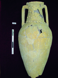 ومن أهم الفخاريات المكتشفة، رقبة جرة «سما الأنفورة»، وهي مستوردة من روما التي تصنع بكثرة هذا النوع من الجرار، والتي تستخدم في نقل وتخزين الزيوت والخمور، إذ تم اكتشاف الجرة في دبا الحصن الذي كان يعد ميناءً استراتيجياً مهماً، كما تم اكتشاف فخاريات في الموقع نفسه، توجد بكثرة وتصنع في بابل في العراق والهند وإيران.