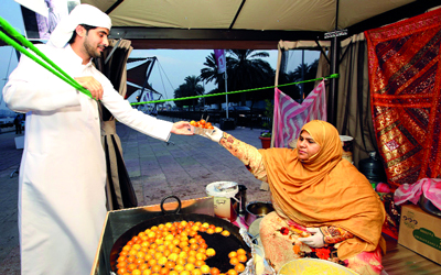 وعلى الرغم من تنوع قائمة «اختر.. وتلذذ»، التي تنتمي إلى مطابخ مختلفـة حـول العالم، فإن الإقبال على مأكولات المطبخ الإماراتي يفوق غيرها، لاسيما حلوى «خبز الرقاق»، وتحديداً «اللقيمات» التي يفضلها المقيمون والسياح في المقام الأول، نسبة لـ(أم راشد)، التي شاركت في مجموعة مختلفة من الفعاليات.