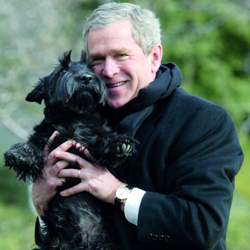 فقد الرئيس الأميركي السابق جورج بوش الابن «صديقه الوفي» الكلب الرئاسي «بارني»، الذي أقام في البيت الأبيض ثماني سنوات. وكان الكلب «بارني»، وهو من نوع تيرير اسكتلندي يبلغ من العمر 12 سنة، يعاني ورماً ليمفاوياً. وقال بوش «كان (بارني) إلى جانبي، خلال سنواتنا الثماني، في البيت الأبيض»، وتابع «لم يناقش قط في السياسة، ولطالما كان صديقاً وفياً، أنا ولورا سنشتاق إليه». وكانت حاكمة ولاية نيوجرسي السابقة كريستين تود ويتمان أهدت الكلب للورا بوش عام 200، في بداية الولاية الأولى للرئيس بوش. ويترك «بارني» وراءه شريكة عمره «بيزلي»، وهي كلبة من نوع تيرير اسكتلندي أهداها بوش لزوجته لورا عام 2005.