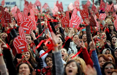 لبّت برلمانيات تركيات دعوة الناشطة الأميركية إيفا إنسلر بمقاطعة أعمالهنّ يوم عيد الحب في حملة "وان بيليون رايزينغ كامباين"، ورقصن تعبيراً عن رفضهنّ لأعمال العنف ضد المرأة.