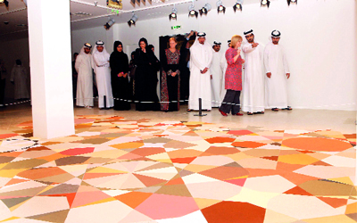فيرشيه تقدم للقاسمي والضيوف شرحاً حول مشروعها الفني. تصوير: أشوك فيرما