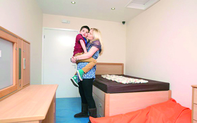 والدة الطفل تحمله داخل غرفة نوم جديدة بدلاً من التي أكلها. أرشيفية