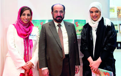 حاكم الشارقة يتوسط بدور القاسمي (يسار) ومروة العقروبي. من المصدر