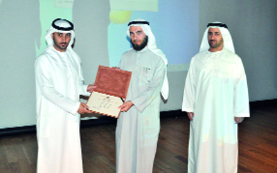 كما شارك المركز بمحاضرة بعنوان رحلة الكتاب، قدمها باسل محمد من العلاقات العامة بالمركز، وبدأ المحاضر فيها بتاريخ الكتابة وحاجة الناس اليها، وتطورها ونماذج من صور الكتابة المسمارية والهيروغليفية، وأدوات الكتابة القديمة كأوراق البردي والألواح الخشبية والجلود وغيرها. وفي نهاية الاحتفال قام المسؤول الإعلامي بالمركز الثقافي، محمد المزروعي، بالنيابة عن مدير المركز، سلطان بن مليح، بتكريم مركز جمعة الماجد، والمحاضر باسل محمد، ومسؤول المعرض أنور الظاهري.
