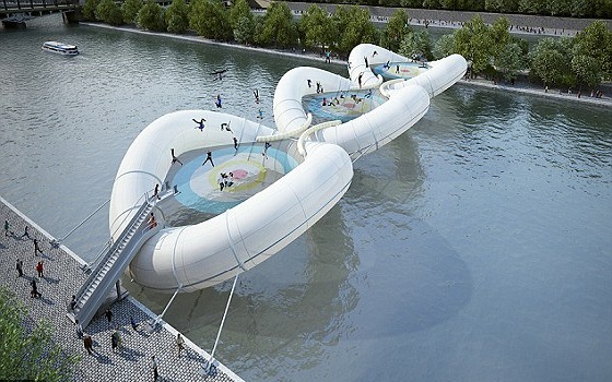 كشفت مسابقة البناء المعماري التي تقام في العاصمة الفرنسية باريس، تصميم جديد لجسر مطاطي، من المقرر بنائه بالقرب من جسر "بير حاكيم "حيث سيصل طولة إلى 30 متر .
