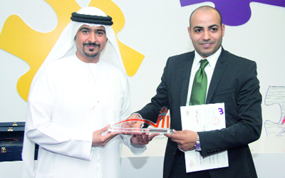 العامري يسلم الجائزة لتامر سعيد. من المصدر