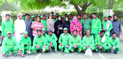 وزارت عضوات في «الجوهرة» عدداً من أماكن وجود العمال، وقمن بتوزيع مشروبات باردة، ومأكولات خفيفة، وحظيت «اروي عطشهم» بتقدير عمال أعربوا عن سعادتهم بالمبادرة التي تسعى إلى لفت انتباه أفراد المجتمع إلى هذه الفئة ودورها في خدمة المجتمع، وما ينبغي تقديمه لها تقديراً وتشجيعاً.