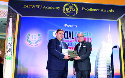 حققت جائزة حمدان بن محمد بن راشد آل مكتوم الدولية للتصوير الضوئي إنجازاً إضافياً جديداً بحصولها على الجائزة الذهبية في جائزة درع المواقع العربية، التي تقدمها اكاديمية «تتويج» للتميز المعلوماتي، وقد نال موقع الجائزة هذا المركز بعد منافسة مع اكثر من 700 موقع إلكتروني على مستوى العالم العربي، من بينها ما لا يقل عن 420 موقعاً استوفت الشروط وفق اللجنة الفنية والتحكيمية المشرفة على المنافسة من قبل أكاديمية «تتويج»، وتنوعت المعايير التي اعتمدت عليها اللجنة المشرفة ما بين مستوى الإبداع للموقع والتميز التقني وسهولة الاستخدام والتصفح، واستخدام تطبيقات برمجية متخصصة، بالإضافة إلى اتقان استخدام لغات البرمجة التي تحقق الهدف من الموقع، وأخيراً التصميم وتناسق الألوان والتوازن والتباين، بالإضافة إلى الجماليات الأخرى المكملة لأغراض الموقع.