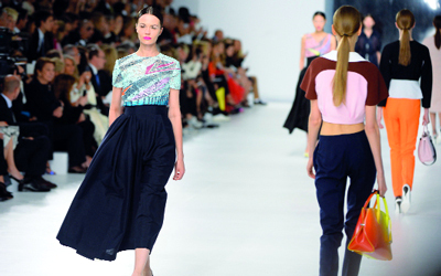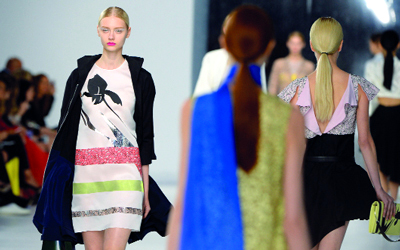 عارضات يقدمن ابتكارات المصمم البلجيكي راف سيمونز، لدار كريستان ديور، خلال عرض بعنوان «كروز» في إمارة موناكو، أول من أمس.