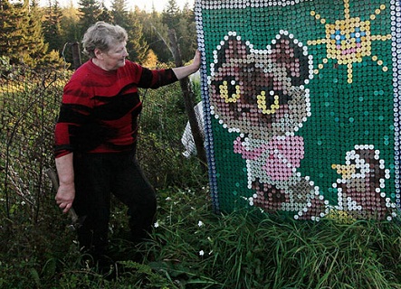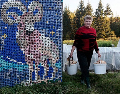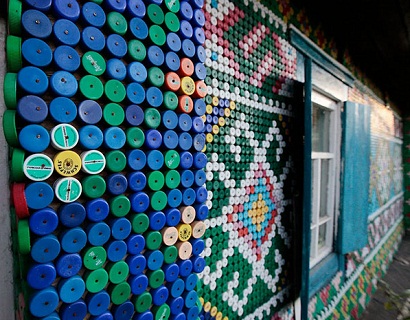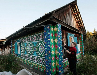 قامت السيدة الروسية أولغا كوستينا بتزيين جدران منزلها الخارجية بأغطية الزجاجات الملونة، حيث استخدمت أكثر من 30 ألف غطاء، مكونة مناظر مختلفة ولوحات بتفاصيل متباينة على جدران ومساحات منزلها الخارجية.