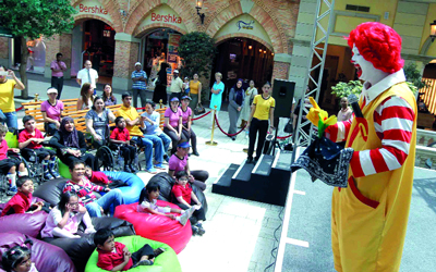 وبدأ اليوم بعرض مثير وشيق لرونالد ماكدونالد على مسرح ميركاتو، فارتسمت ابتسامة عريضة على وجوه الأطفال، تعبر عن فرحتهم لمشاهدة العرض، ثم انتقل الأطفال للاستمتاع بوجبة غداء مقدمة من ماكدونالد، ثم توجهوا إلى المشاركة في بعض الأنشطة الفنية والحرف اليدوية التي تم تصميمها بعناية تماشياً مع قدراتهم، فكان يوماً صيفياً جميلاً في ميركاتو لأطفال مركز راشد لعلاج ورعاية الطفولة، إذ علت البسمة وجوههم، وقد أعرب مركز ميركاتو عن سروره للقيام بدور المضيف لهؤلاء الأطفال، والمشاركة في نشر الفرحة في نفوسهم.