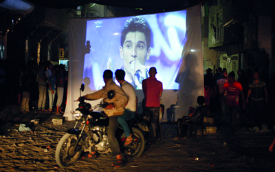 ورفعت صور ضخمة لعساف على جدران مبان مرتفعة في مدن الضفة الغربية وغزة مع دعوات للتصويت له.
