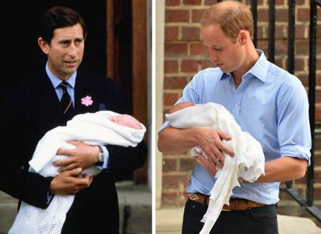 تناقلت مواقع التواصل الاجتماعي صورا للأمير تشارلز وهو يحمل ابنه دوق كامبريدج، ومقابلها صورة للأمير ويليام وهو يحمل الأمير الجديد، مما يعد إعادة لدورة الحياة.