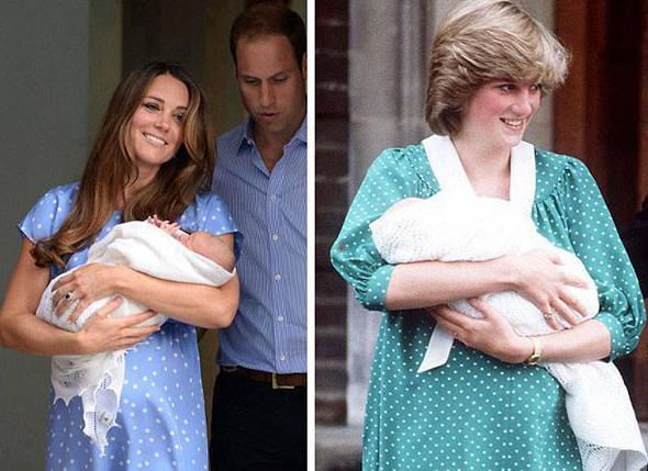 كما انتشرت صورة أخرى للأميرة ديانا وهي تحمل الأمير ويليام، وفي مقابلها صورة للدوقة كيت زوجة الأمير ويليام وهي تحمل ولي العهد الثالث الجديد.