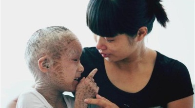 ويعاني الطفل "بان شان هانغ"، الذي لا يتجاوز الـ8 سنوات من مرض جلدي يُعرف علمياً باسم "جلد السمكة"، والذي جعل جسمه بالكامل يتغطى بما يشبه حراشف السمك بسبب انسداد مسامه بالكامل، مما تسبب في اعاقة الطفل عن الحركة بشكل طبيعي أو ممارسة حياته اليومية.