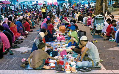تتنوع العادات الاجتماعية في شهر رمضان المبارك من دولة إلى أخرى. لكن السمة العامة التي تفرض حضورها في هذا الشهر هو ميل الناس إلى الالتقاء والتجمع وممارسة الطقوس الجماعية خصوصاً عند الإفطار. ومع التحولات التي شهدتها دول كثيرة واتجاه أغلبية الناس نحو الحياة الفردية بدأت تظهر المبادرات الكثيرة، التي تنظمها مؤسسات وهيئات خيرية وعامة لجمع الناس عند الإفطار. وخلال هذا الشهر شهد الكثير من الدول الإسلامية والغربية مبادرات لإفطار جماعي في الأمكنة العامة هدفها استعادة تقاليد لم تعد رائجة كثيراً، وتعريف غير المسلمين بطقوس وخصوصية هذا الشهر الفضيل.
