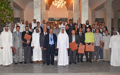 نهيان بن مبارك والفائزون ولجنة تحكيم الملتقى. من المصدر