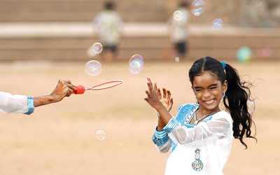 فرحة غير مصطنعة على الوجوه، ونقوش حناء على الأيدي، وملابس مزركشة جديدة.. تزين الصغار والكبار في عيد الفطر، يستوي في ذلك أطفال سوريون في العاصمة دمشق، وآخرون على بعد آلاف الأميال ينثرون الضحكات بين الموج على شاطئ في العاصمة الإندونيسية جاكرنا، ونساء بغداديات يتناسين الألم، ويحلمن بغدٍ مفخخ بالفرح، لا بشيء آخر.