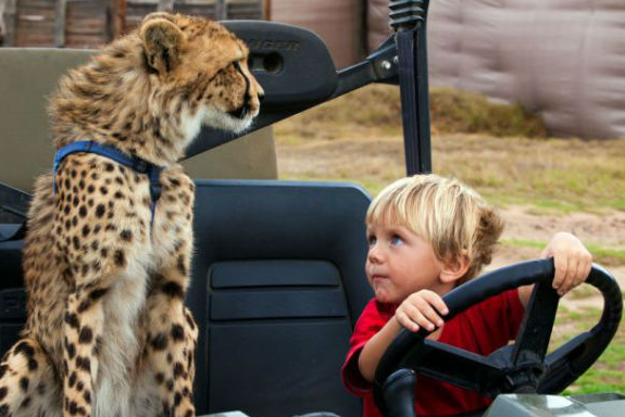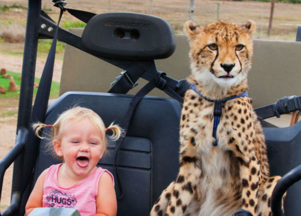 نشأ الطفلان وسط الفهود التي ترعاها وتربيها أسرتهم في منزلها بجنوب إفريقيا. ويرى الأبوان أن الفهود ليست مخيفة، وذلك لكونها قريبة جداً من القطط.
