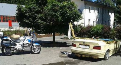 ولكن شرطة بلدة "ايبينستوك" الألمانية قامت بسحب السيارة القديمة، والقبض على مالكها.