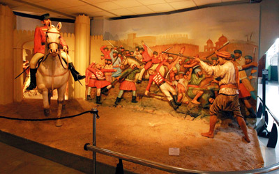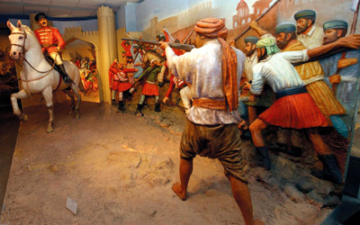 مجموعة من الصور التي تعرض مرحلة حرب الاستقلال الأولى، والتي اندلعت عام 1857 ضد الاحتلال البريطاني في شبه القارة الهندية، في متحف باكستان للنصب التذكارية في العاصمة الباكستانية إسلام آباد، حيث يوفر المتحف نظرة في تاريخ الدولة.