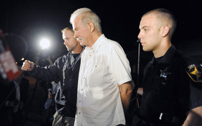 اعتقل القس الأميركي تيري جونز في فلوريدا، عندما كان يستعد لإحراق نحو 3000 نسخة من القرآن الكريم في مناسبة الذكرى الـ12 لاعتداءات 11 سبتمبر، حسب ما ذكرت صحيفة اأورلاندو سنتينلب. واعتقل جونز (61 عاماً) في مالبري قرب تامبا في فلوريدا، ووجهت إليه تهمة نقل الوقود بشكل غير مشروع وحيازة سلاح ناري بحسب الصحيفة المحلية. ولدى توقيفه كان القس يقود سيارة ابيك آبب تسحب قاطرة تحتوي على جهاز شواء يحتوي على مصاحف سكبت عليها مادة الكيروسين.
