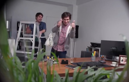 قامت شركة إلكترونيات شهيرة بالإعلان عن جهاز التلفاز الخاص بها بطريقة غريبة ومربكة، حيث قامت بتنفيذ مقلب على عدد من العامة، بعد أن قامت بطرح إعلان طلب متقدم لوظيفة، وقامت بتثبيت آخر إصداراتها من الشاشات المسطحة بحجم 84 بوصة، على الواجهة الخلفية للغرفة لتبدو وكأنها نافذة. وعند وصول المتطوعين يتم عرض صورة خلفية لمبان ومناظر عامة تبدو في الوهلة الأولى وكأنها منظر من النافذة، وبعد البدء في المقابلة، يتم عرض مقلب "يقلب" حالهم رأساً على عقب!