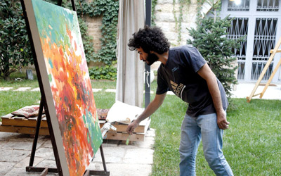 تصور رتوش الألوان على لوحة زيتية من القماش رسمها عماد حباب لحظة وقوع انفجار في الحرب الأهلية السورية. وقال الفنان المجعد الشعر (24 عاماً) الذي رسم اللوحة بعد خروجه من دمشق الصيف الماضي، إن «الانفجار يصور لحظة يمكنها أن تمحو كل الأحلام كل الفرص كل الأفكار». وبسبب التفجيرات والسيارات الملغومة وحظر التجول أصيبت الساحة الفنية التي كانت يوماً نابضة بالحياة في سورية بالشلل منذ اندلع القتال قبل نحو عامين ونصف العام، وارتحل مئات الفنانين السوريين الشباب مثل حباب إلى لبنان حيث المكان الآمن والجمهور.