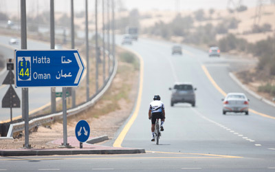 في دراجة حرارة جاوزت الـ42، مرتدياً قميصاً مزيّناً بالأمل في استضافة «دبي إكسبو 2020»، قطع المواطن خليفة إبراهيم السميطي (35 عاماً)، مسافة 450 كيلومتراً، من منطقة الراشدية في دبي، وصولاً إلى ولاية صحار العُمانية، في محاولة منه للترويج، دعماً لملف الدولة لاستضافة معرض «إكسبو الدولي 2020».