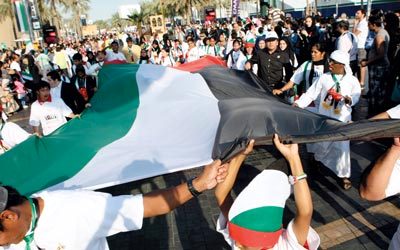 متابعة فعاليات وزارة الثقافة والشباب وتنمية المجتمع لاحتفالات اليوم الوطني الـ42 تحظى بمتابعة مباشرة ومستمرة من قبل معالي الشيخ نهيان بن مبارك آل نهيان، وزير الثقافة والشباب وتنمية المجتمع. مشاركة أكدت اللجنة العليا المنظمة لاحتفالات اليوم الوطني الـ42 خلال اجتماع اللجنة الأول على أهمية مشاركة جميع شرائح المجتمع من المواطنين والمقيمين على أرض الإمارات، والتنسيق والتوزيع لكل الفعاليات الخاصة. فعاليات أقرت اللجنة التنفيذية المنظمة لفعاليات الوزارة موعداً مبدئياً لبدء فعاليات حملة العلم في منتصف أكتوبر، وما تتضمنه من مسابقات وفعاليات واحتفالات من مسابقات ومعارض فنية وحفلات غنائية تحييها مجموعة من أبرز الفنانين الإماراتيين. |