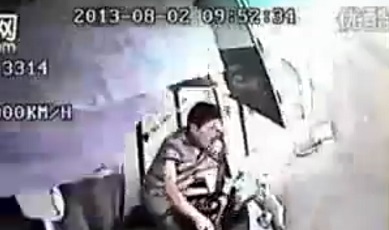 وسجلت الكاميرات المعلقة في سقف الحافلة لحظة وقوع الحادث، وحالة الهرع التي أصابت الركاب، وفيما يبدو أن سائق المركبة سقط من النافذة المجاورة له.