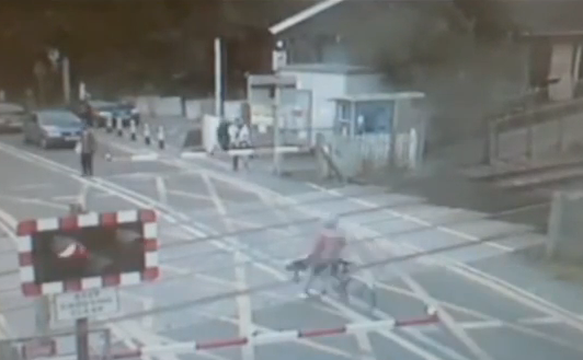عرضت شرطة النقل البريطانية لقطات من لحظة صدمة لامراة تجاهلت الحواجز وشارات التحذير في السكك الحديدية وكاد القطار أن يدهسها.