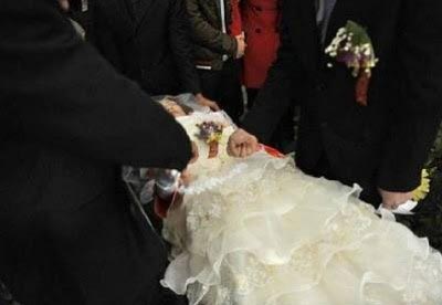 وفوجئ معازيم الصالة بأصوات صياح تلاها دخول 4 نساء يلبسن الملابس السوداء، ويحملن تابوت وفي داخله العروس.