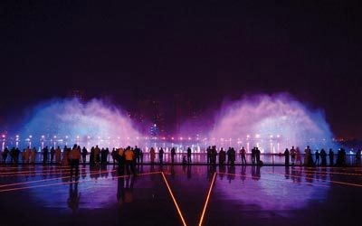 مرافق تحتضن الواجهة العديد المطاعم والمقاهي العالمية الشهيرة المنتشرة على ضفافها، التي تتمتع جميعها بإطلالات خلابة على النافورة، كما تضم ملعب غولف مصغراً، ومرافق متنوعة للأطفال. |
