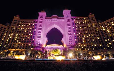اكتسى منتجع أتلانتس النخلة في دبي باللون الوردي، ضمن مشاركته في حملة مكافحة سرطان الثدي العالمية، التي تستمر طوال شهر أكتوبر، بغرض تشجيع النساء على الفحص الذاتي للكشف المبكر عن سرطان الثدي. وتأتي مبادرة المنتجع، التي انطلقت يوم الجمعة الماضي، ضمن مبادرة عالمية تتخذ اللون الوردي شعاراً لها لتشجيع النساء على إجراء الفحوص بانتظام.