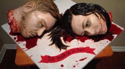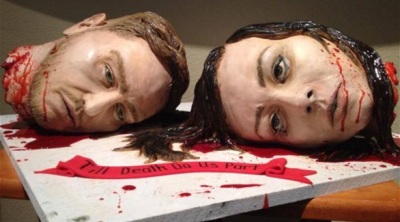 انتاب مدعوون إلى حفل زفاف في مدينة أوستين ألامو بولاية تكساس الأمريكية، حالة من الذعر والهلع عندما شاهدوا رأسي العروسين مفصولين عن جسديهما وتغطيهما الدماء، ليتضح فيما بعد أنها كعكة الزفاف!