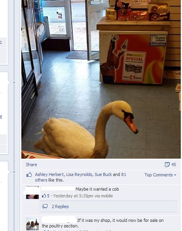فوجئت عاملة في متجر ببلدة، ويست بريدجفورد، في مقاطعة نوتنغهامشاير، البريطانية، بدخول بجعة تجولت بين أقسامه والتقطت أكياساً من رقائق البطاطس والشوكولاته.