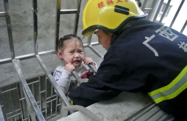 علقت الطفلة الصينية تشييو وانغ (3 أعوام) في فتحات الحماية في نافذة منزلها بعد أن سقطت بين القضبان، إلا أن رأسها علق وحال دون وقوعها من ارتفاع أربعة طوابق.